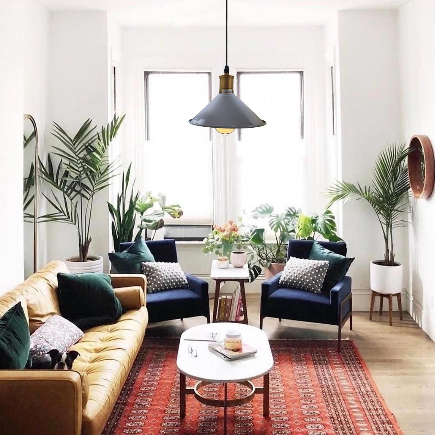 - A complete set including pendant, metal shade, ceiling canopy, and installation hardware.